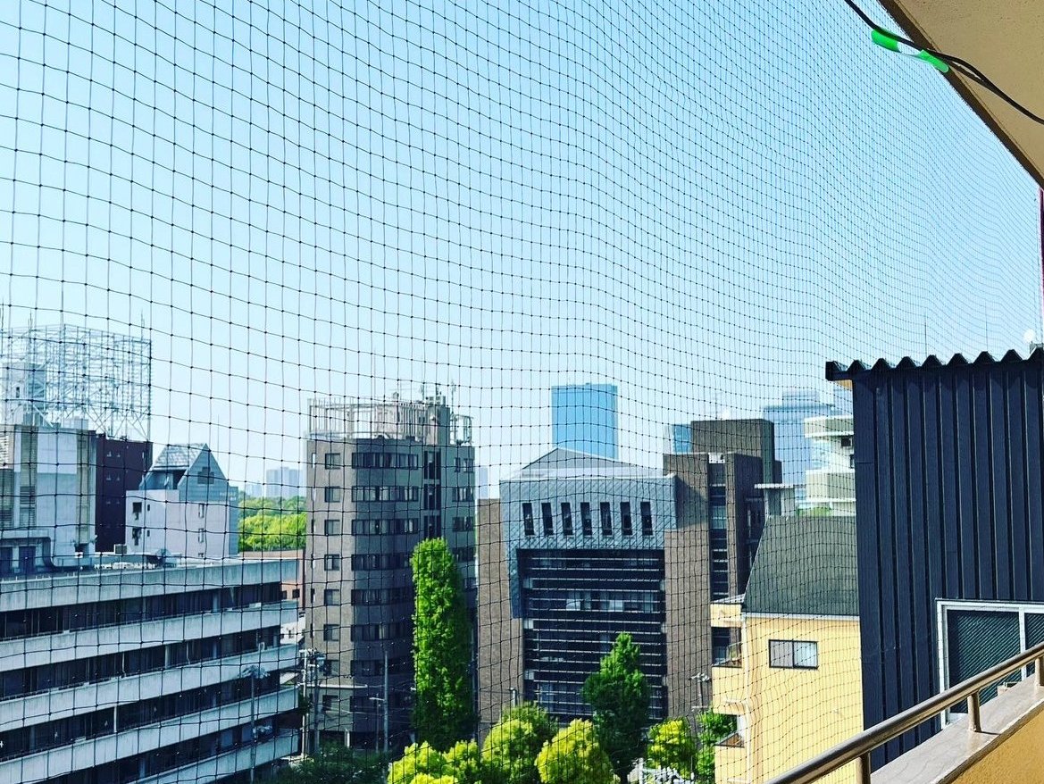マンションのバルコニーなどでの、ハトやカラスの糞害はネットを掛けるしか対策方法がありません。