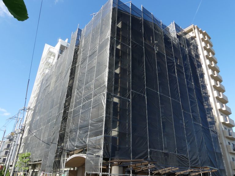 - コロナ禍で一部病棟が専用病棟になり制約が更に増えた条件下で、屋上の看板の施工のために足場仮設するだけでコストが大幅に増加。